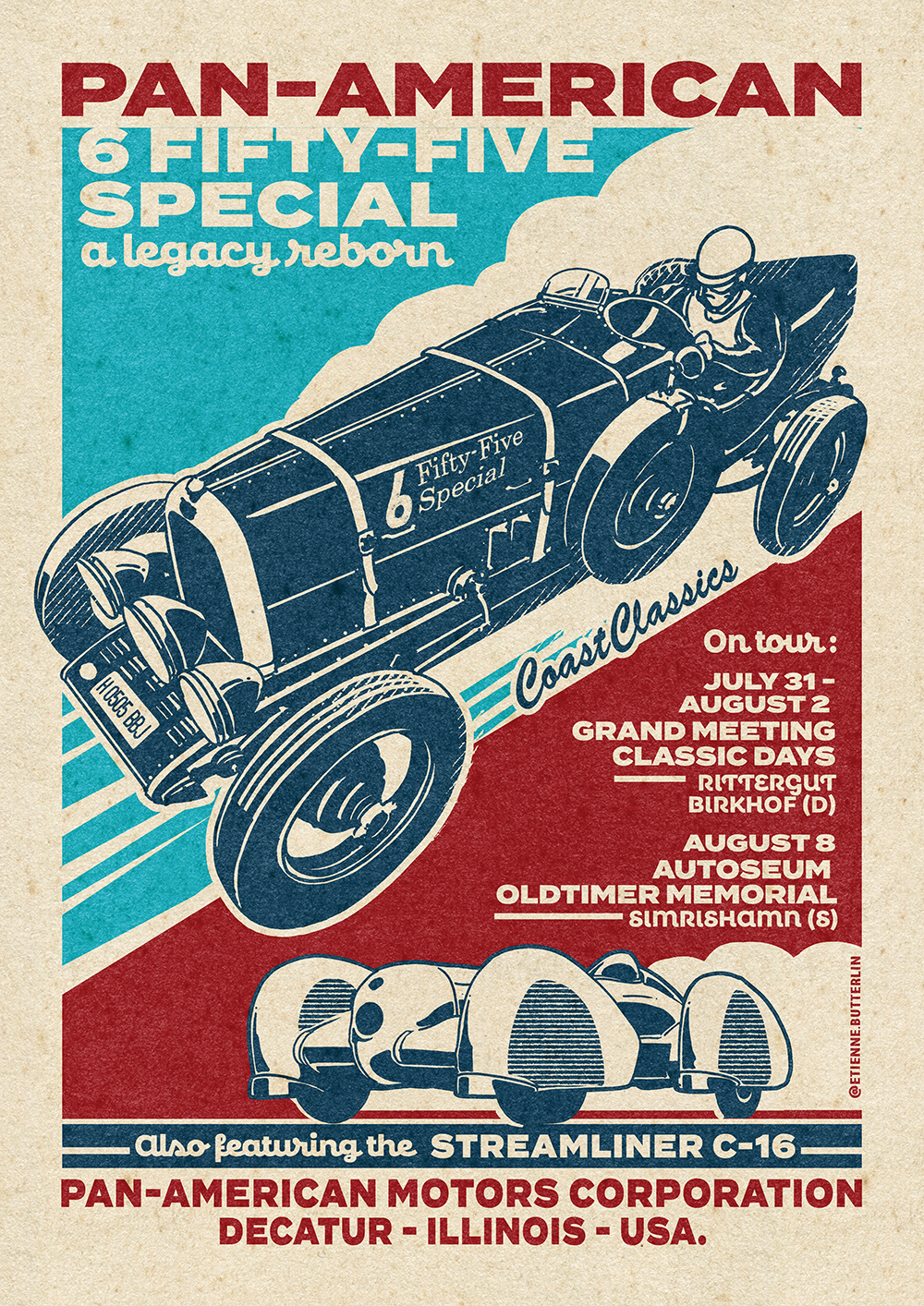 Mehr als 2.950 Stunden handwerkliches Können, Engagement und gemeinsame Vision wurden von Glenn bei Recreating History und der CoastClassics zwischen Schweden und Spanien zusammengetragen, dazu kamen unzählige weitere Stunden, die gemeinsam mit Historikern weltweit damit verbracht wurden, die Vergangenheit des Autos aufzudecken. Während wir uns nun auf die offizielle Präsentation beim „2026 Classics on Wheels” während des „Rockin’ Race Jamboree” vorbereiten, wird auch der Pan-American „6 Fifty-Five Special” für seine ersten öffentlichen Auftritte bei Veranstaltungen in diesem Jahr in Wales, Deutschland und Schweden vorbereitet. Dies ist mehr als nur die Wiedergeburt eines Autos. Es ist eine Geschichte, geschrieben in Metall, Zeit und Leidenschaft.